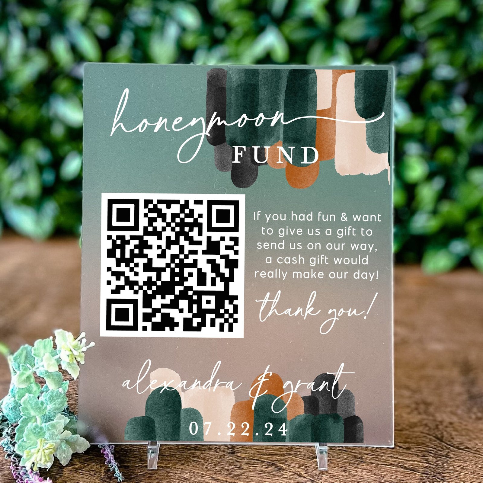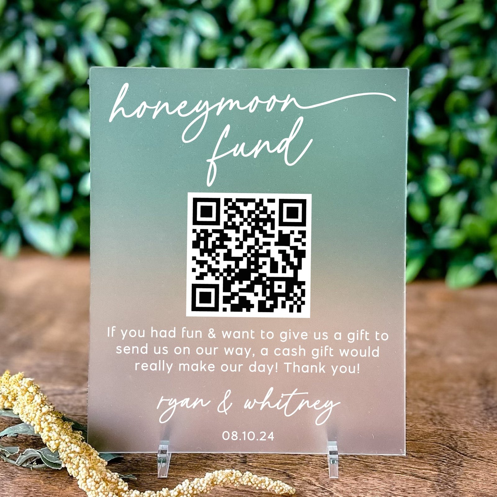• Custom QR Code: Personalize your sign with a QR code linked to your preferred honeymoon fund platform for easy contributions.