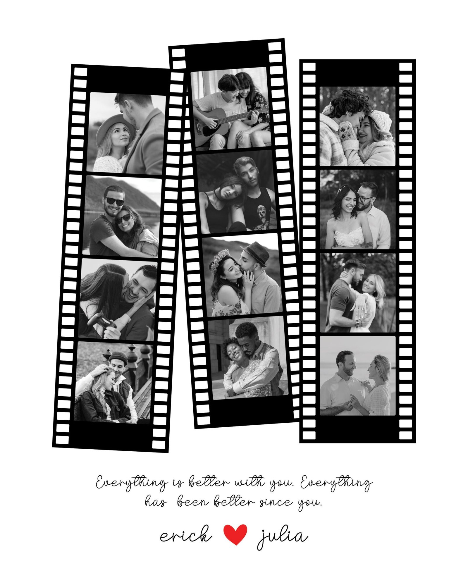 - Retro Camera Roll Design: Recreate the nostalgic look of a camera roll with your favorite photos celebrating your relationship, capturing the essence of your journey together.