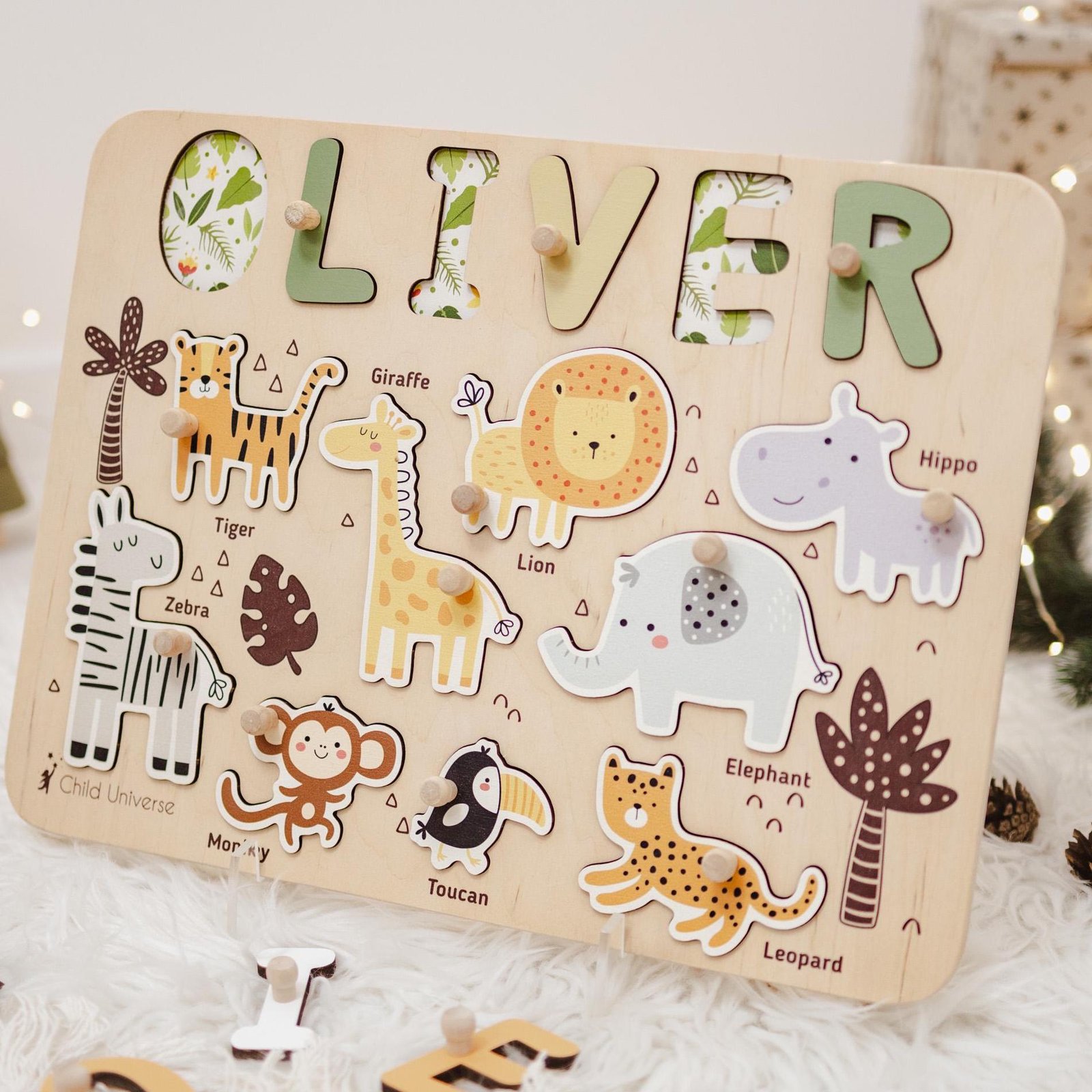 Imagination runs wild with the Jungle Puzzle Board for Kids—a beautifully handcrafted, personalized wooden puzzle designed to spark creativity, promote essential motor skills, and encourage early literacy in toddlers. More than just a toy, it’s a meaningful keepsake that grows with your child and supports Montessori-inspired learning.