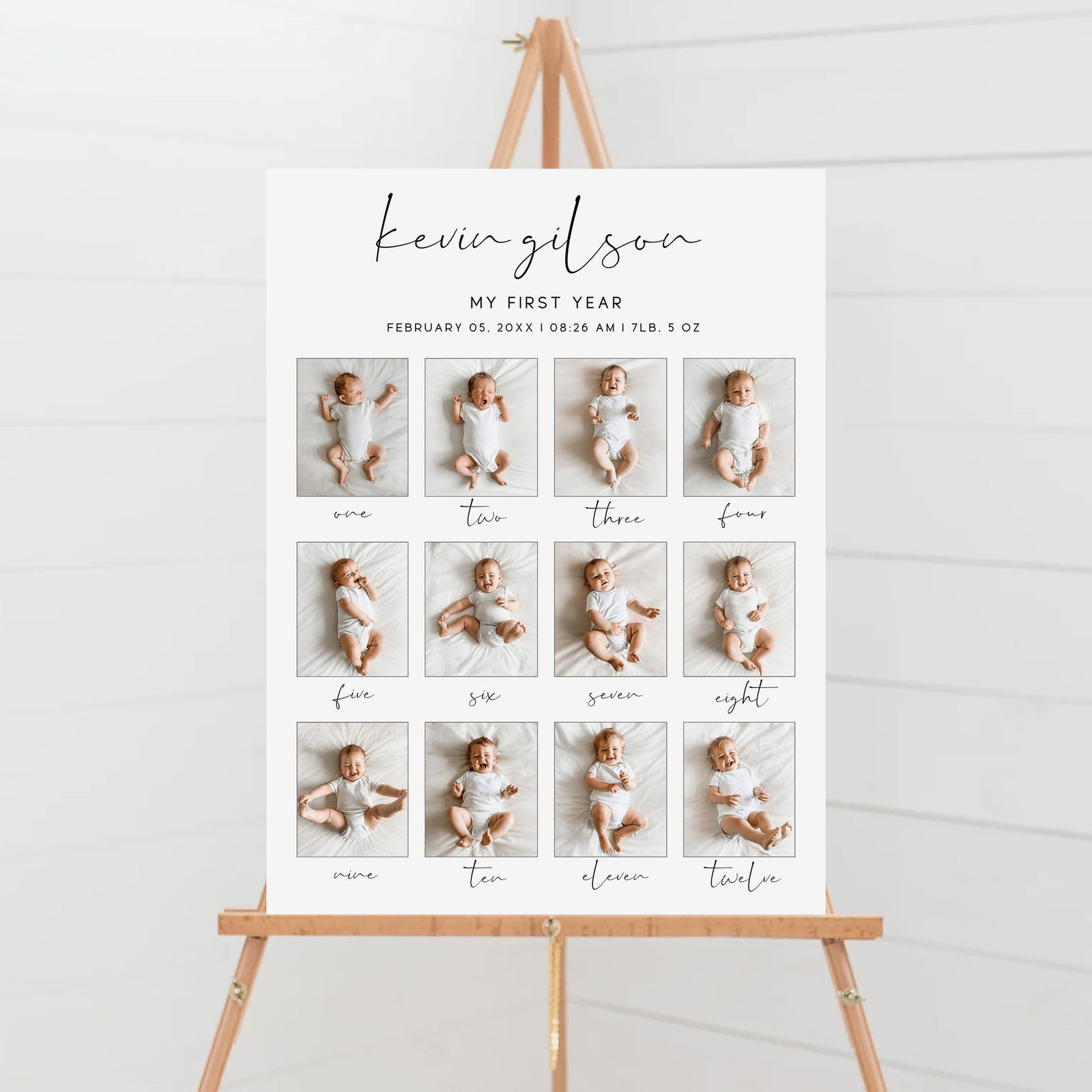 • Modern, Minimalist Design A clean layout with elegant fonts and simple icons ensures the attention stays on your baby’s milestones, making it perfect for any gender or party theme.